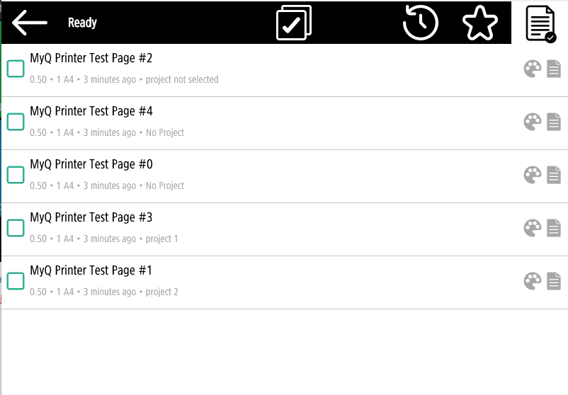 Wenn allen Aufträgen in der Warteschlange bereits Projekte von MyQ Desktop Client, der MyQ Web-Administratorschnittstelle oder der MyQ X Mobile Client-Anwendung zugewiesen wurden, beginnt der Druck sofort.