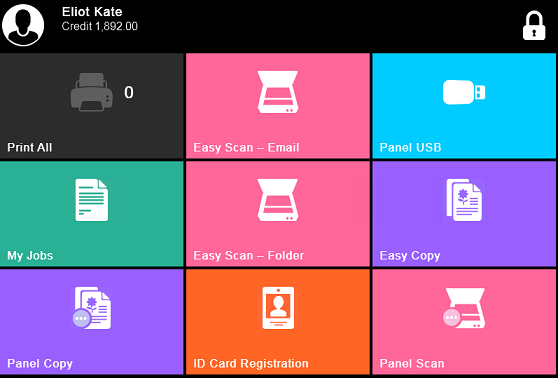 Dank der MyQ-Personalisierung können Sie die Oberfläche vollständig an die Anforderungen der internen Organisation anpassen. Jede Schaltfläche kann mit einem bestimmten Verhalten eingestellt werden und nur für bestimmte Benutzer verfügbar sein.
