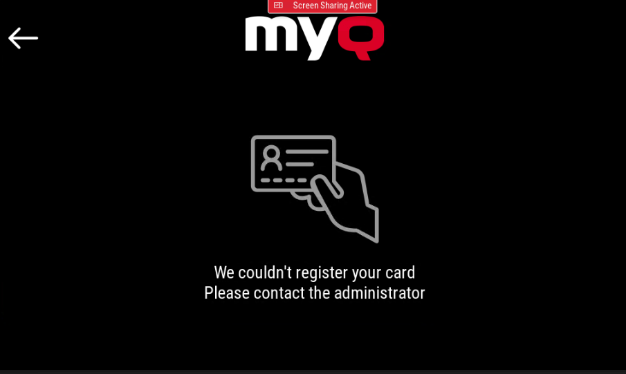 Wenn die Karte nicht erfolgreich registriert wurde, wird folgende Meldung angezeigt: „Wir konnten Ihre Karte nicht registrieren. Bitte wenden Sie sich an den Administrator.“