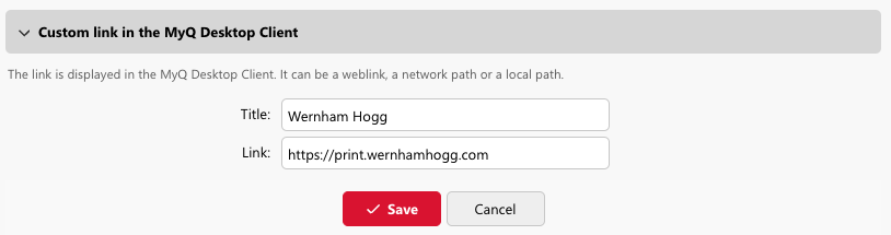 You can set the link to point to the MyQ Web Interface so that users have easy access to it.