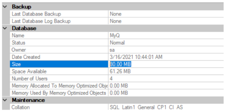 In this example, we can see that the total size of both databases is about 330 MB, so for the upgrade process, the C: drive must have at least 1,3 GB of free space.