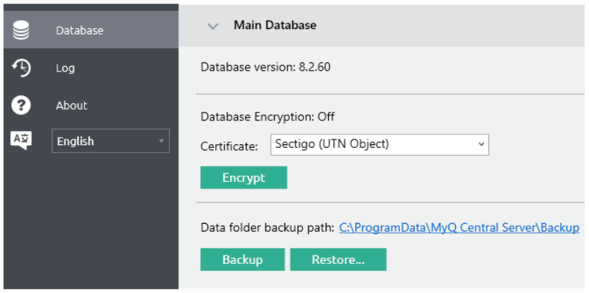 Backup can be manually created either by using the MyQ web interface or the Easy Config.