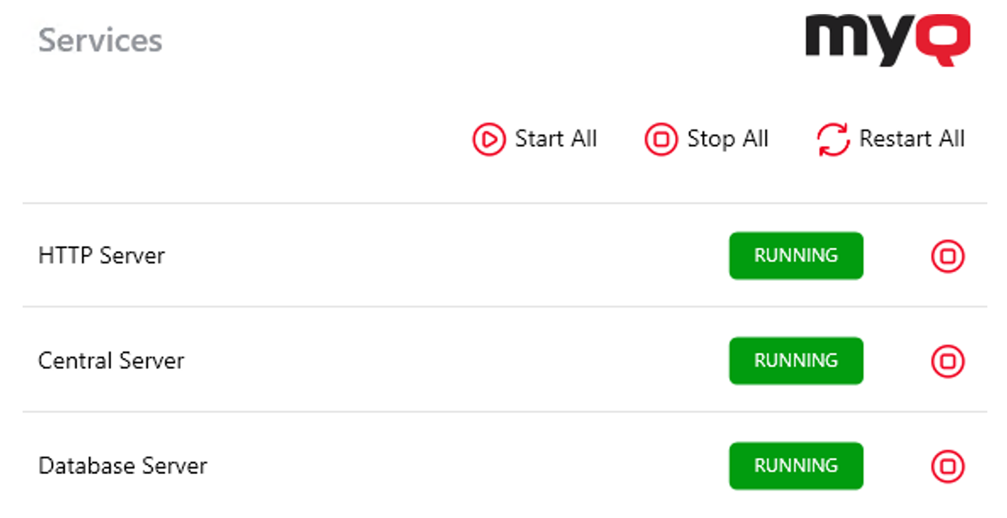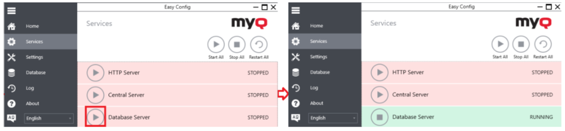 Log in as a user with local administrator privileges on the server running MyQ and run the Easy Config application.