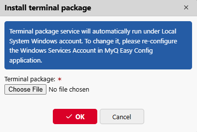 In MyQ > Settings > Printers & Terminals you can add new terminal packages, or replace or delete the existing ones.