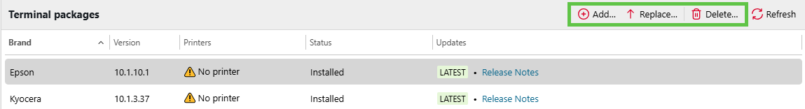 To install a second package, use the Add option in MyQ > Settings > Printers & Terminals.