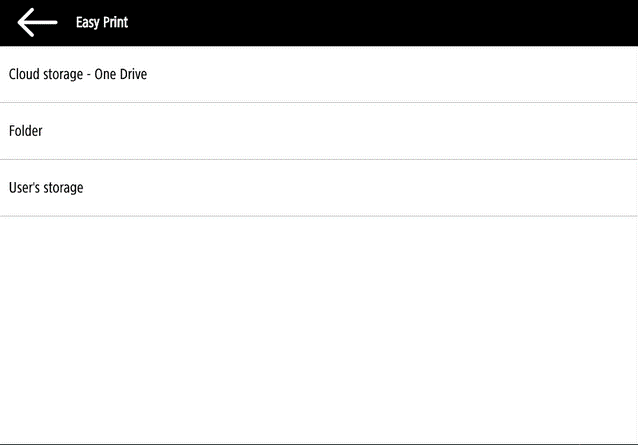 The Easy Print terminal action allows users to print files without sending them first to MyQ. These files can be printed from multiple destinations, like several cloud storages, network drives or local drives, and the user's default storage.