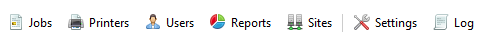 From the Quick links gadget, you can directly access the most important tabs of the MyQ Web Interface: Jobs, Printers, Users, Reports, Sites, Settings, and Log.