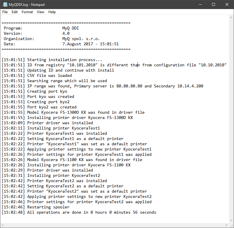 To see if all the operations were successful, you can also check the MyQDDI.log.