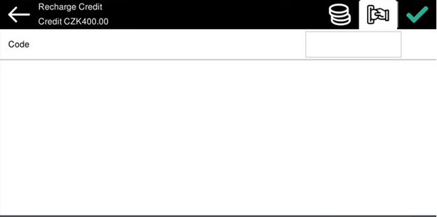 After tapping the Recharge Credit action, the Recharge Credit screen opens and the logged user can enter a recharge code from their voucher.