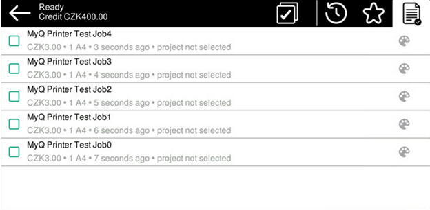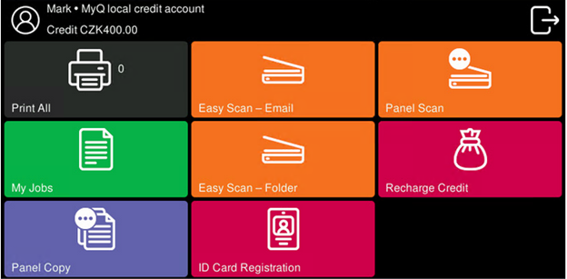 If recharging credit by vouchers is disabled in MyQ and a user does not have sufficient credit, all actions requiring credit are unavailable, and their corresponding buttons are dimmed.