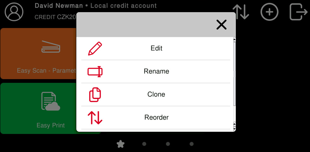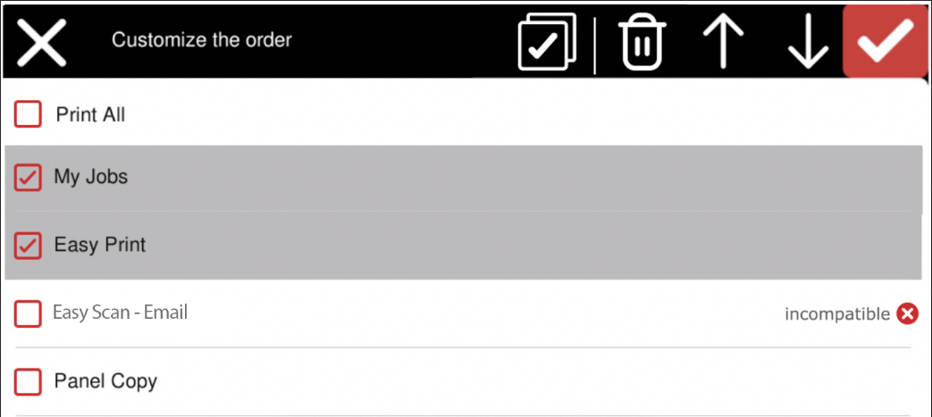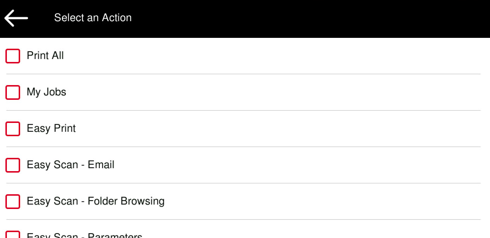 Only Easy Actions, Print All, My Jobs, and ID Card Registration can be added as Favorite Actions.