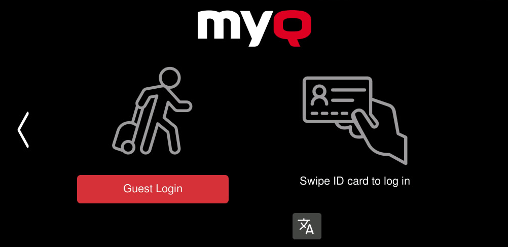 Set what the guest user can see in the embedded terminal once they log in, by choosing one of the options from the Guest screen list: [empty], Topmenu, Copy, Scan, USB, Box, Fax.