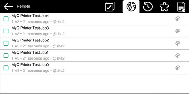 This terminal action shows all the jobs that can be printed on the printing device. Users can manage their ready, favorite, and printed jobs here.
