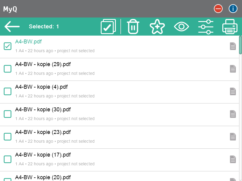 Add to favorites: Tap the star-plus icon to add the selected jobs to your favorites (Visible on the Ready jobs tab and on the Printed jobs tab).