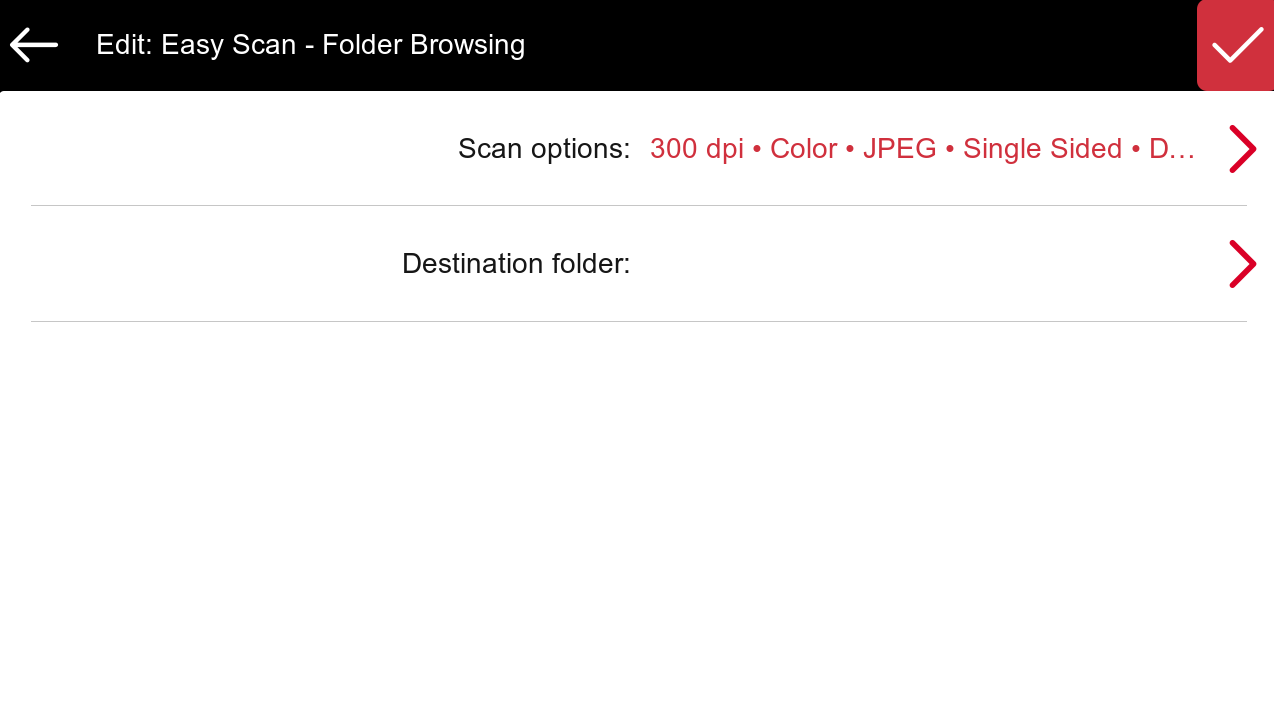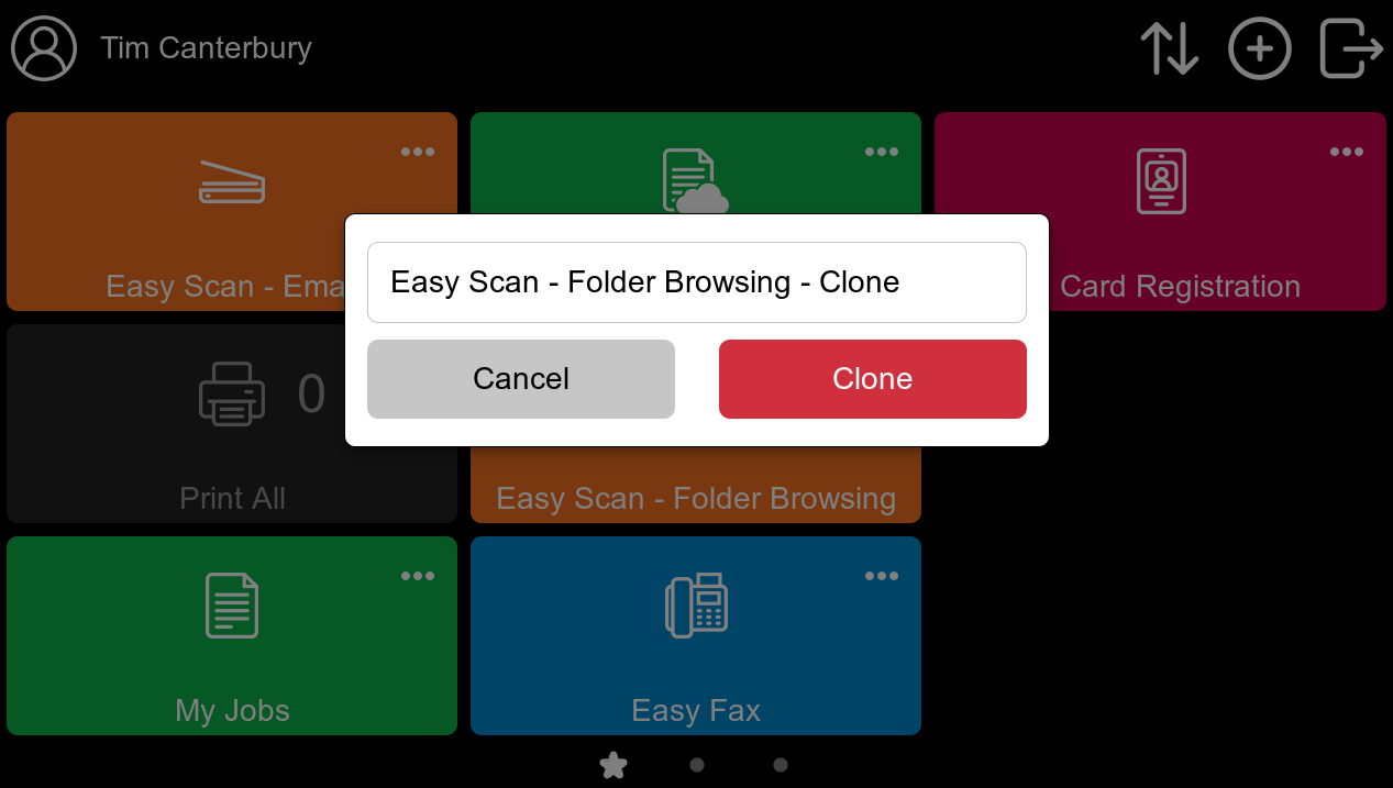 Easy Scan and Easy Copy favorite actions can be edited, allowing a user to change the scan or copy parameters.