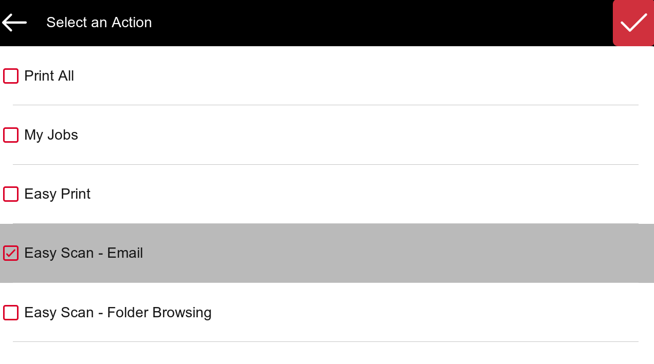 Only Easy Actions, Print All, My Jobs, and ID Card Registration can be added as Favorite Actions.