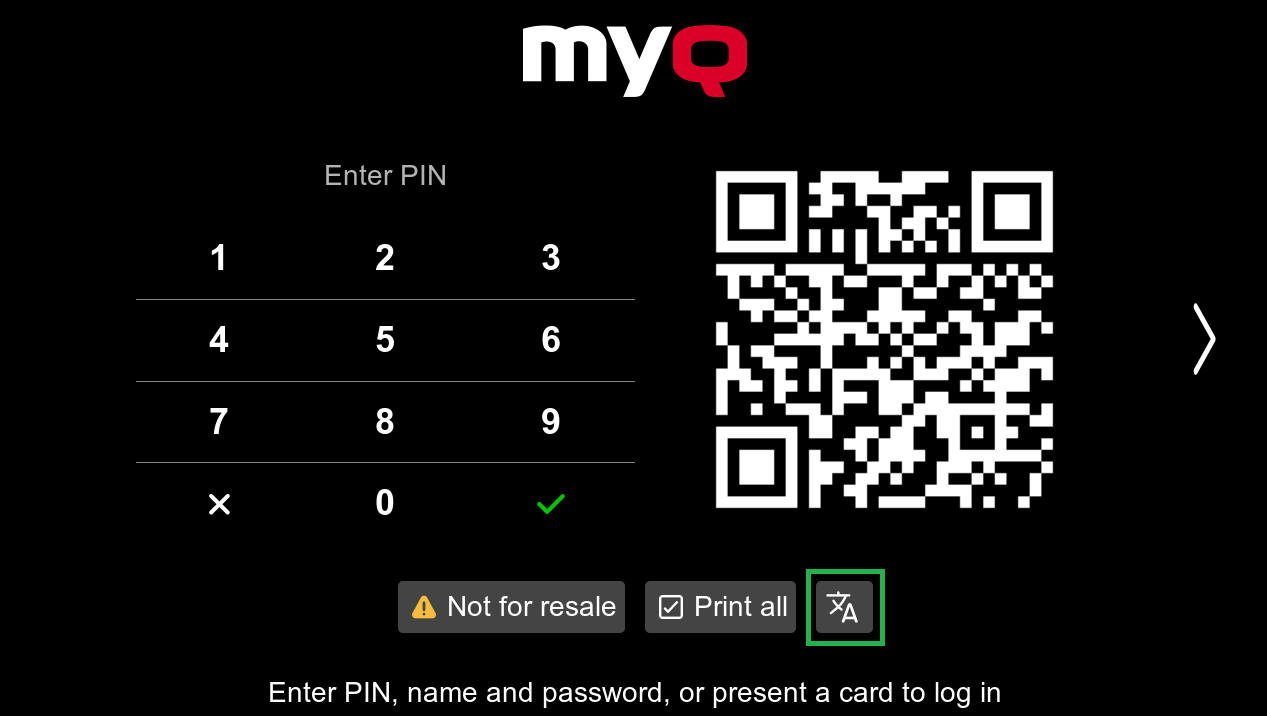 The default language of the terminal is the default language set on the General settings tab. For more information, see General Settings in the MyQ Print Server guide.