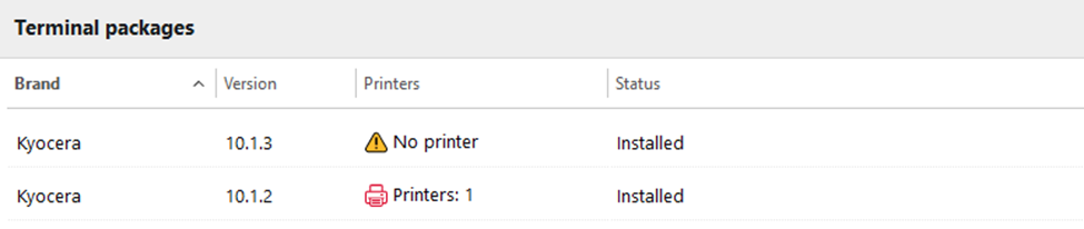 When multiple packages are available and installed in MyQ Web UI > Settings > Printers & Terminals, you can then choose the desired version for a specific printer.
