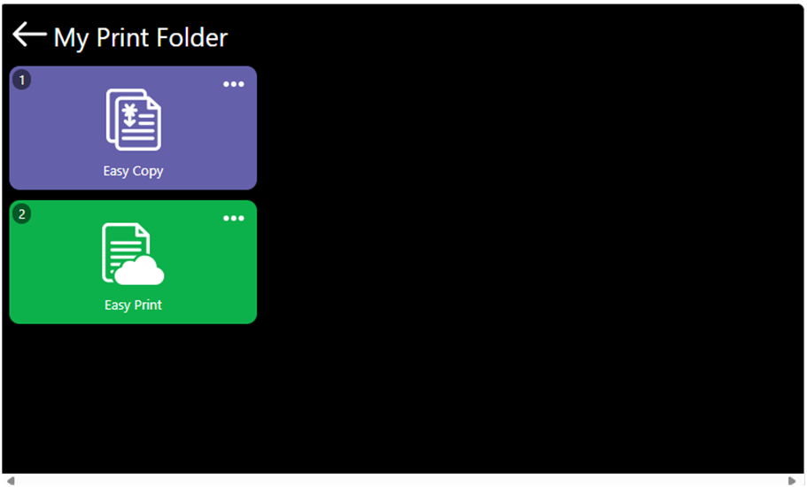 Terminal actions can be put into folders. Folders can be used to optimize the layout of the terminal screen or to enable users to access a larger number of actions. For example, you can place multiple Easy Scan actions with different destinations under one Easy Scan folder. Another example is to leave the most important terminal actions on the home screen and place the rest into an additional actions folder.