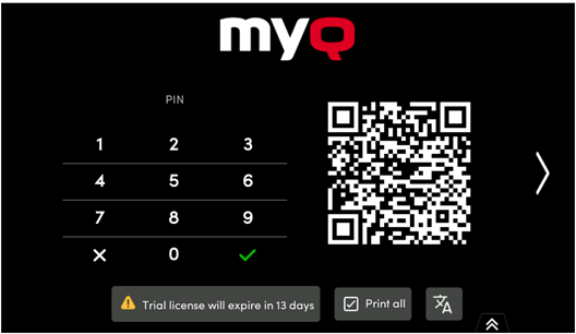 Even if the Print all jobs after logging in option is selected on the server, users can disable the feature on the embedded terminal before they log in. This way, each user can individually decide if they want to print the jobs automatically or manually via the Print all button.