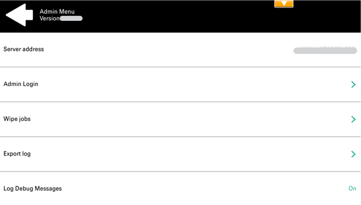 From the terminal’s Admin Menu, you can administer the terminal and change its settings. The available actions are Admin Login, Wipe jobs, and Export log.
