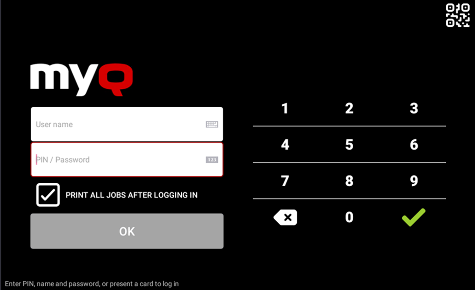 As an alternative to the Print All terminal action, you can use the Print all jobs after logging in feature. Once enabled on the Printers & Terminals settings tab, under General, all the user's jobs are printed immediately after they log in to an embedded terminal. This way, the user does not have to tap the Print all button to print the jobs.