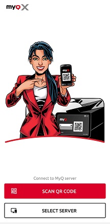 The easiest way to connect to the server is to scan a QR code that you can find on any of your company's printing devices. Usually, it is either printed on a sticker near the printing device panel or directly displayed on the panel. It can also be accessed on the Web UI. In case you cannot use these options, you can ask your administrator for all the necessary information and manually connect to the server.