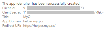 In the Redirect URI box, choose Web and https://helper.myq.cz/.