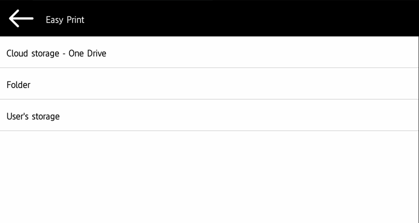 The Easy Print terminal action allows users to print files without sending them first to MyQ. These files can be printed from multiple destinations, like several cloud storages, network drives or local drives, and the user's default storage.