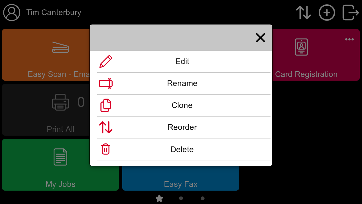 Easy Scan and Easy Copy favorite actions can be edited, allowing a user to change the scan or copy parameters.