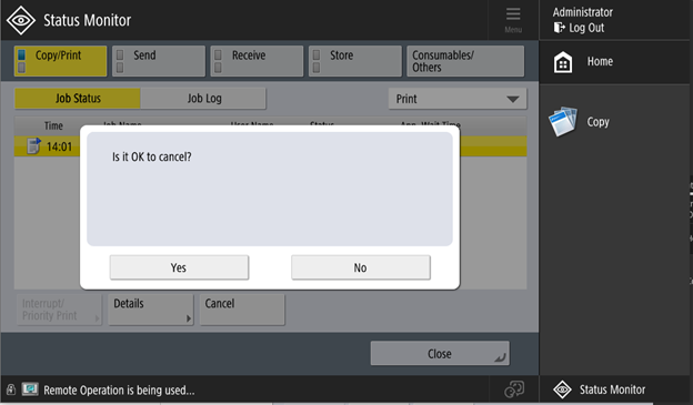 Cancelar los trabajos como administrador a través de Canon Status Monitor nativo.