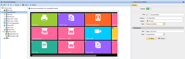 Una vez realizada la configuración en ScannerVision, es necesario crear un MyQ Smart Workflow en Acciones terminales.