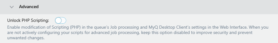 En el Avanzado puede activar o desactivar la modificación de scripts de trabajo PHP en la Interfaz Web, por defecto esta opción está desactivada.