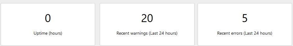Advertencias recientes | Número de mensajes de registro de advertencia en las últimas 24 horas. Se almacena en caché cada 30 segundos. |