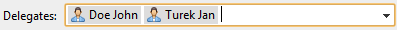 En la barra de la parte superior del Delegados en la pestaña Delegados introduzca el usuario (o el grupo de usuarios) y haga clic en Guardar. De este modo, puede añadir varios usuarios (o grupos de usuarios).