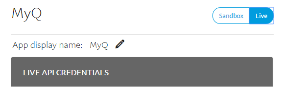 Seleccione En vivo en la esquina superior derecha de la pestaña, y recuerde (copie) el Identificación del cliente y Secreto. Las credenciales se utilizarán para conectar la cuenta a MyQ.