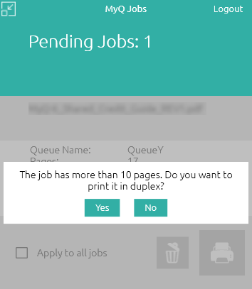 Además, puede emplear scripts PHP para establecer la interacción con los usuarios de MyQ a través de un cuadro de diálogo mostrado en MyQ Desktop Client en su ordenador.