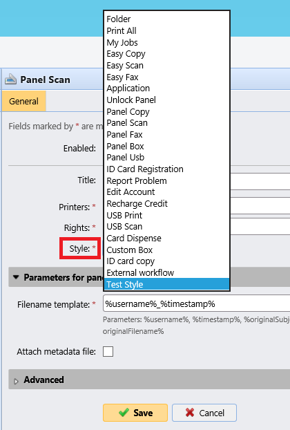 En el Estilo seleccione el estilo recién importado de la lista y haga clic en Guardar.