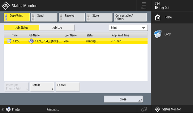 Annulation des travaux en tant qu'administrateur via le moniteur d'état natif de Canon.