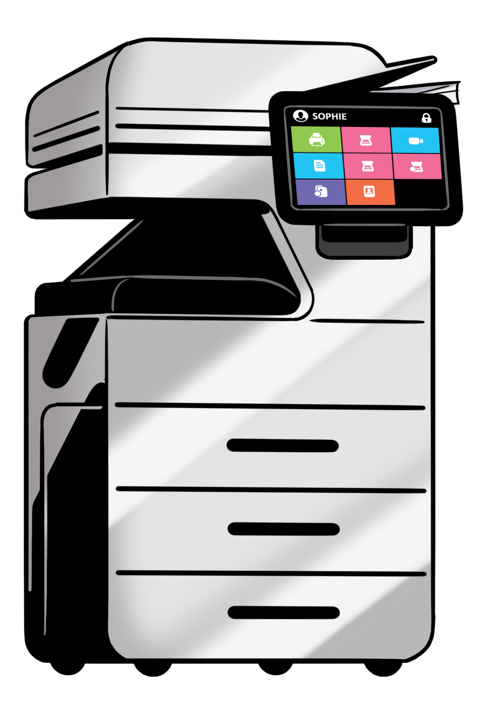 Troisièmement, MyQ Embedded Terminals s'efforce d'améliorer la simplicité d'utilisation de chaque imprimante multifonction (MFP).