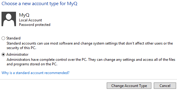 Créez un nouveau compte d'administrateur local avec des droits d'administration complets.