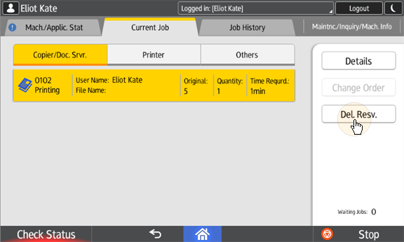 Si le Continuer à imprimer après la déconnexion sur l'écran Imprimantes est désactivé, tous les travaux seront annulés après la déconnexion.