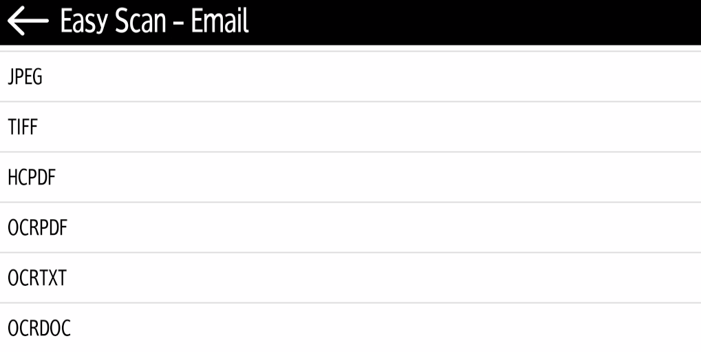 L'OCR (Reconnaissance Optique de Caractères) peut être utilisée avec Easy Scan, en créant des profils OCR et en permettant aux utilisateurs de les sélectionner sur le terminal embarqué. Pour plus de détails, voir OCR sur le guide MyQ Print Server.