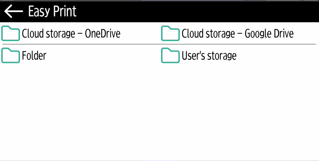 L'action Easy Print permet aux utilisateurs d'imprimer des fichiers sans les envoyer d'abord à MyQ. Ces fichiers peuvent être imprimés à partir de plusieurs destinations, comme plusieurs stockages dans le nuage, des lecteurs réseau ou locaux, et le stockage par défaut de l'utilisateur.