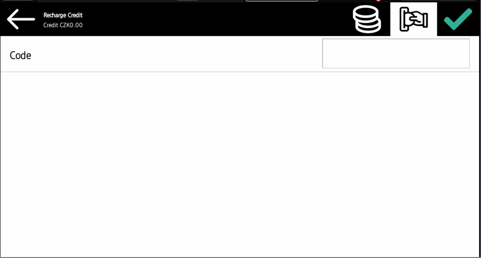 Après avoir appuyé sur la touche Crédit de recharge l'écran Recharge de crédit s'ouvre et l'utilisateur connecté peut saisir un code de recharge à partir de son bon d'échange.