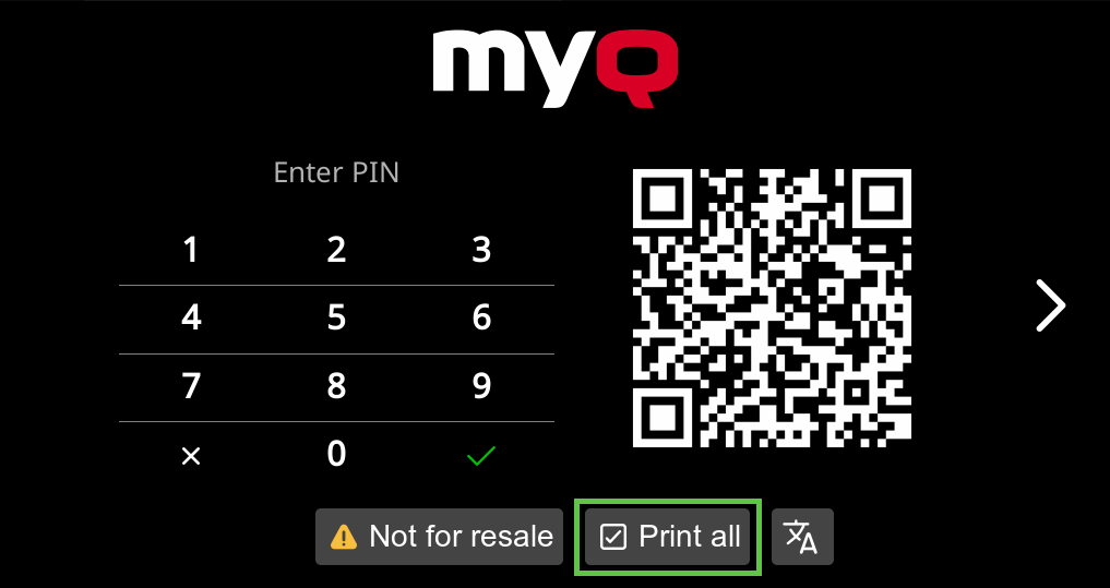 Si l'utilisateur désactive la fonction sur le terminal et ne se connecte pas dans les 30 secondes, l'écran du terminal s'actualise avec le message suivant Imprimer tous les travaux après s'être connecté sélectionnée.
