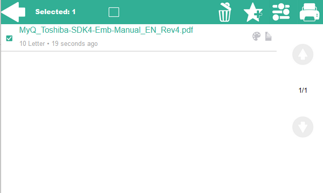 Emplois prêts: Il s'agit de l'onglet initial de la Mes emplois l'écran. Elle peut être rouverte en appuyant sur l'icône de la page dans le coin supérieur gauche de l'écran. Elle contient les travaux en attente, prêts à être imprimés.