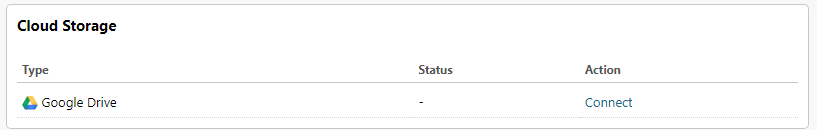 Stockage en nuage: Il s'agit d'une liste de vos stockages en nuage disponibles. S'ils ne sont pas connectés, vous pouvez cliquer sur Connecter et suivez les instructions de connexion en fonction du type de stockage en nuage.