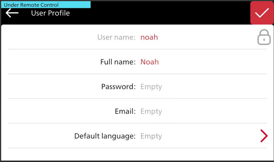 By tapping the User icon in the Top Menu, the current user can open their user profile screen, where they can change their Full name, Password, Email and Default language. After the change is submitted, the database entry is changed, and the new values are set. The changes are applied the next time the user logs in.