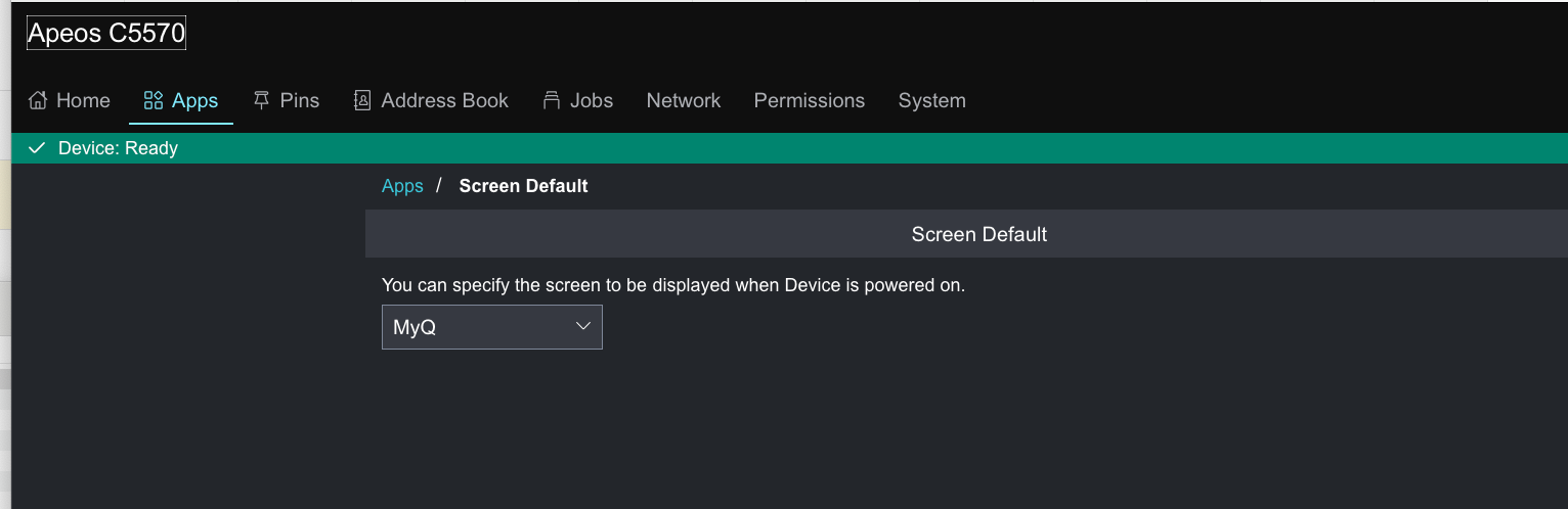 Select MyQ as the default screen to be displayed when the device is powered on.